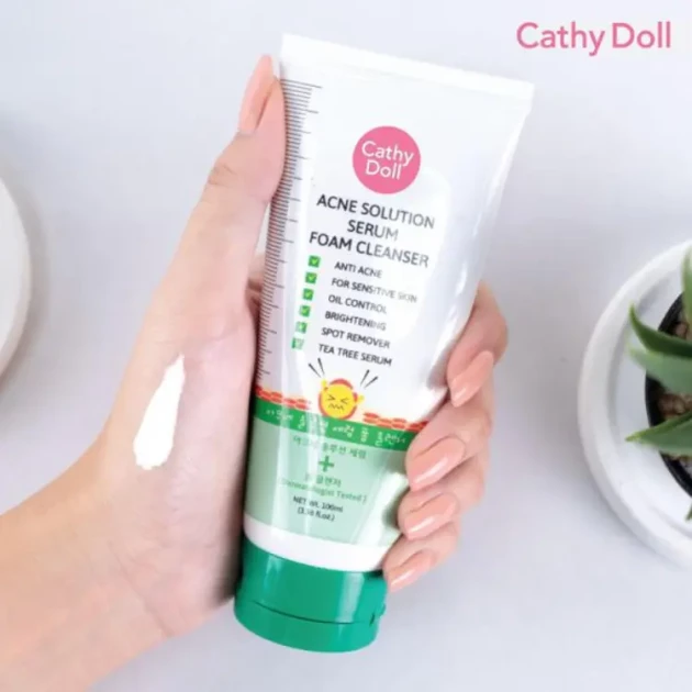 Cathy Doll Acne Solution Serum + Foam Cleanser is the latest product from Korea which mixes cleansing foam with tea tree serum. This face wash helps your skin control oil and reduces acne outbreak. At the same time, it helps brighten your skin and reduces dark spot. Cathy Doll Acne Solution Serum + Foam Cleanser is Dermatologist Tested.